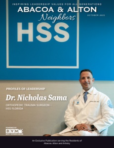 PROFILES OF LEADERSHIP Dr. Nicholas Sama Photo by Neil Cohen Photography I N S P I R I N G L E A D E R S H I P V A L U E S F O R A L L G E N E R A T I O N S An Exclusive Publication serving the Residents of Abacoa, Alton and Artistry O C T O B E R 2 0 2 5 ORTHOPEDIC TRAUMA SURGEON - HSS FLORIDA
