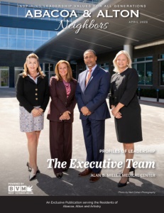 PROFILES OF LEADERSHIP The Executive Team Photo by Neil Cohen Photography I N S P I R I N G L E A D E R S H I P V A L U E S F O R A L L G E N E R A T I O N S An Exclusive Publication serving the Residents of Abacoa, Alton and Artistry A P R I L 2 0 2 6 ALAN B. MILLER MEDICAL CENTER